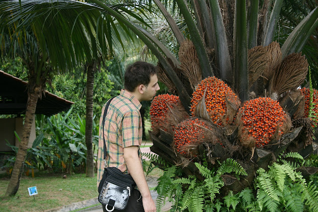 Видели резиновые деревья. То есть деревья, из которых добывают резину. Разрезают кору, а оттуда капает белая резина. Сначала она жидкая, а потом застывает. Мы даже прочитали о техпроцессе изготовления полноценной резины из такой жидкой.